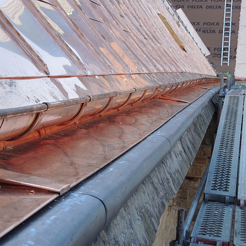 Einer unserer spezialisierten Schwerpunkte liegt im Bereich von Dächern, Fassaden sowie Abdichtungen aus Titanzink, Kupfer, Aluminium, Blei sowie Stahl/ Edelstahl.